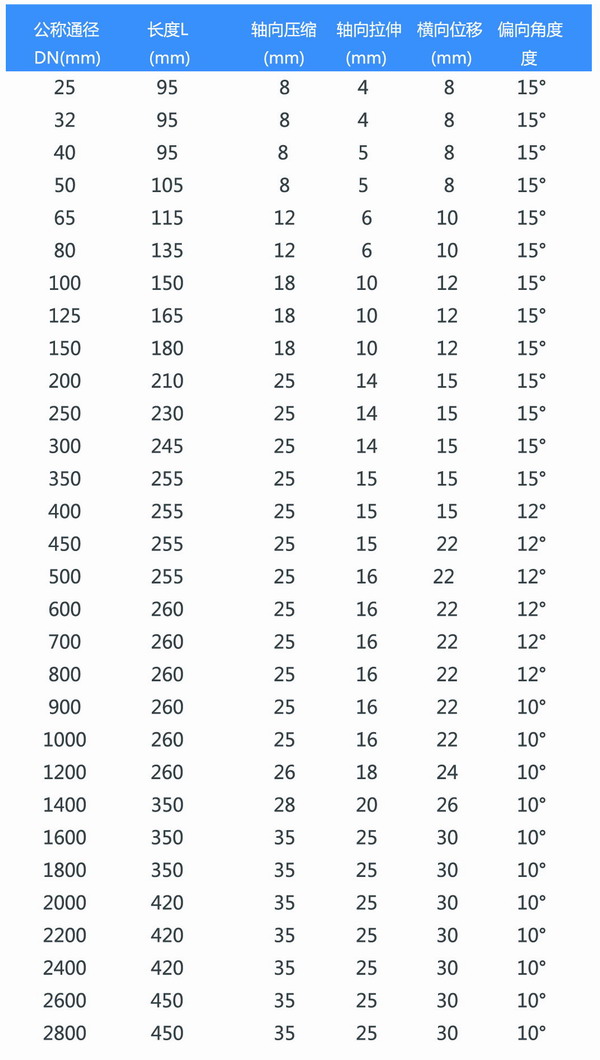 骨架層——丁基橡膠+氯丁橡膠+聚酯簾布;骨架材料選用強(qiáng)力高,斷裂強(qiáng)度≥190cN/tex,斷裂應(yīng)力≥2.76GPa,彈性模量≥44N/tex,斷裂伸長(zhǎng)率≥4%聚酯簾布。使內(nèi)外層與骨架層的緊密結(jié)合,經(jīng)過(guò)硫化成為一體,解決了橡膠接頭的熱伸脹及整體附著強(qiáng)度和耐壓性能,保證足夠的承受其真空度和水錘沖擊能力。